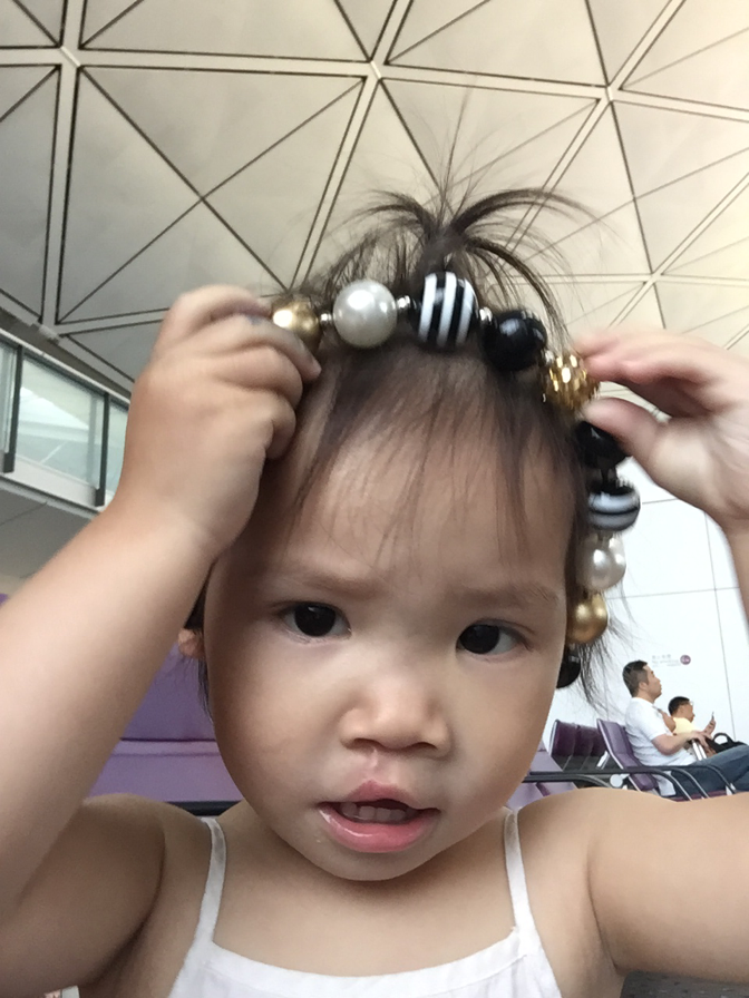 We checked out of our hotel in Guangzhou and headed for the airport at 6:30 am. Our flight was to leave for Hong Kong at 9:55 am but since it was to be an international flight we needed to get there early. Ruthie was not happy to be waked up, and who could blame her?