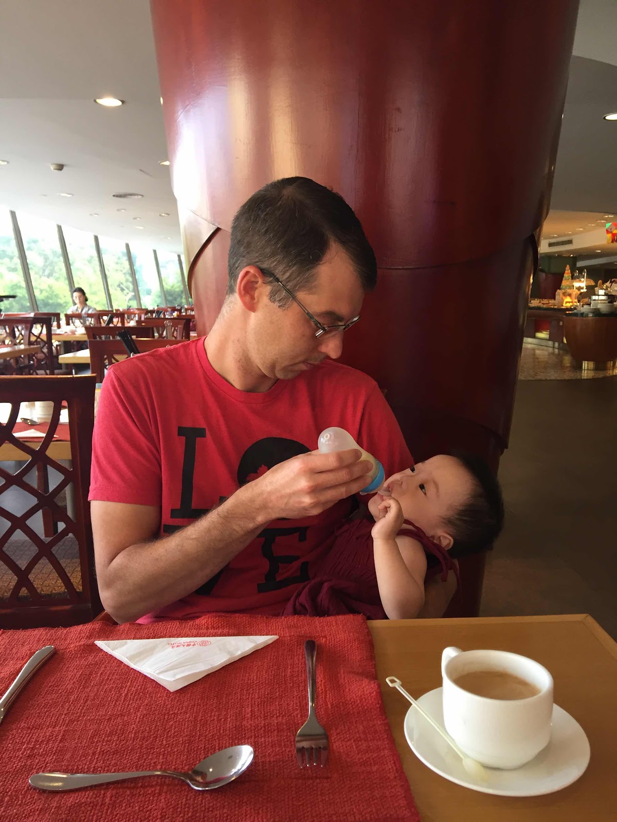 I took her back to our room so Trent could eat. I was admittedly frustrated by the time I got back to our room because she flopped and flailed about so much that I wasn’t able to scan our room card in the elevator. So it took me down to the ground floor where I felt like I was holding a slippery eel under my arm who can’t walk or stand for more than 3 seconds when she’s in a good mood. By the time we made it to our room I laid her on the floor in front of the mirror with her toys so she could pitch her fit while I brushed my teeth.